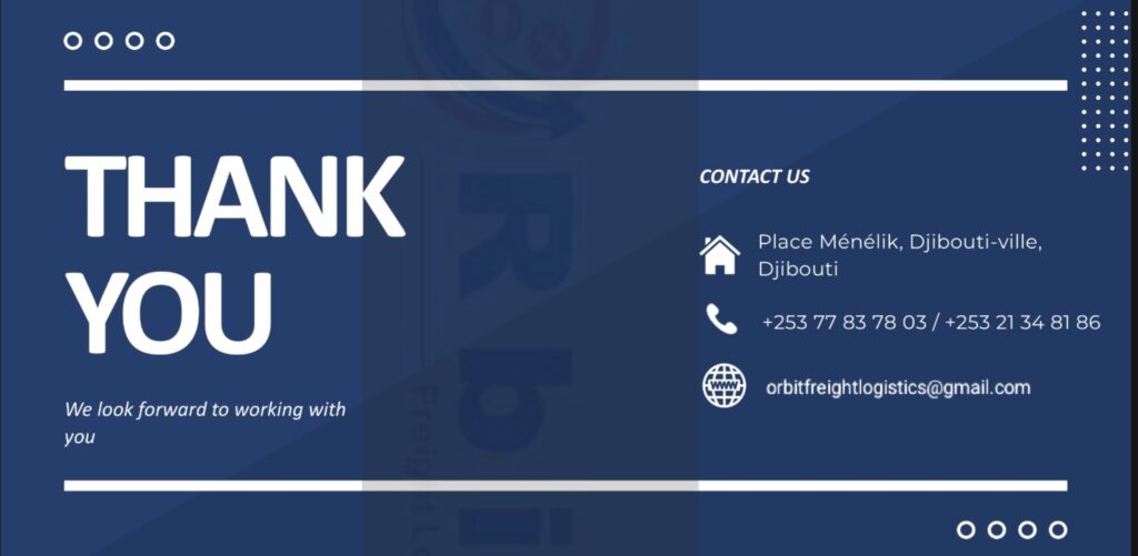. Orbit Freight Logistics Service is a fully licensed freight forwarding and transit solutions provider based in the Republic of Djibouti. Since our establishment in 2018, we have steadily built a reputation as a trusted partner in logistics, especially for companies seeking efficient and seamless cargo movement through Djibouti ports and onward into Ethiopia and the region.
